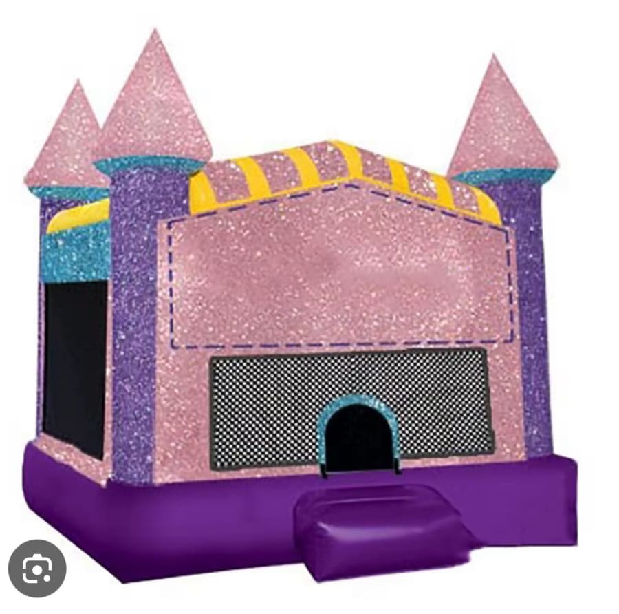 Transform any gathering into a vibrant celebration with our enchanting Glitter Vinyl Bounce House! Perfect for birthdays, family reunions, or any special occasion, this girly bounce house is guaranteed to bring a smile to every child's face. Designed with a shimmering glitter vinyl exterior, it's not just a bounce house; it's a sparkling wonderland that invites endless fun and imagination. 🌟