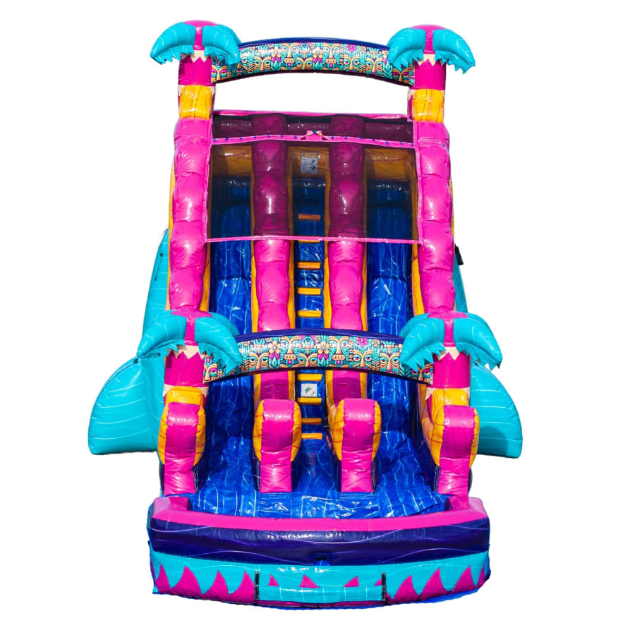Get ready for double the fun with our 20 FT Teal Rippling Rush Dual Lane Water Slide! This vibrant teal inflatable features two exhilarating lanes, allowing riders to race side by side down a thrilling 20-foot descent into a splash pool below. Perfect for backyard parties, school events, or community festivals, the Rippling Rush brings high-energy excitement and cool refreshment to any occasion. Designed with safety and visual appeal in mind, it's sure to be a crowd favorite for kids, teens, and even adventurous adults.